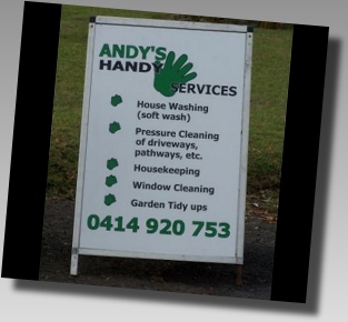Banners can be produced in just about any size to best suit your application. They can be produced in simple single colour, multi colour or even full digital printed designs. There is also the option of various liquid laminated to protect your banner, including an Anti-Grafitti laminate. A Frames can be supplied as a complete freestanding unit or as a core-flute insert for an existing frame. Designs can be simple single colour, more complex multi coloured, or even full colour digitally printed designs. We also offer full digital print and die-cut decals, perfect for bumper stickers. These are available in short runs, making them a cost effective promo item for your business or organisation. |